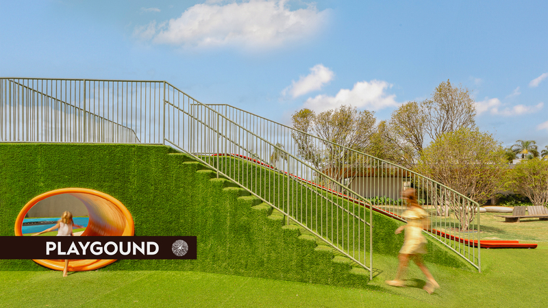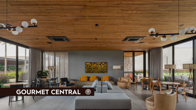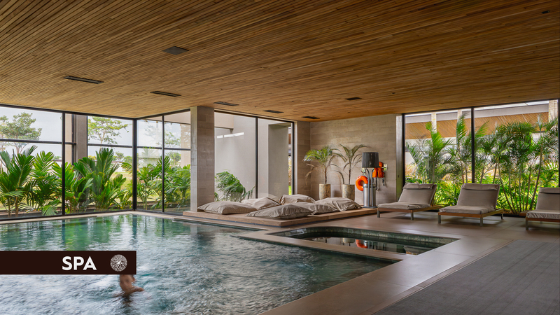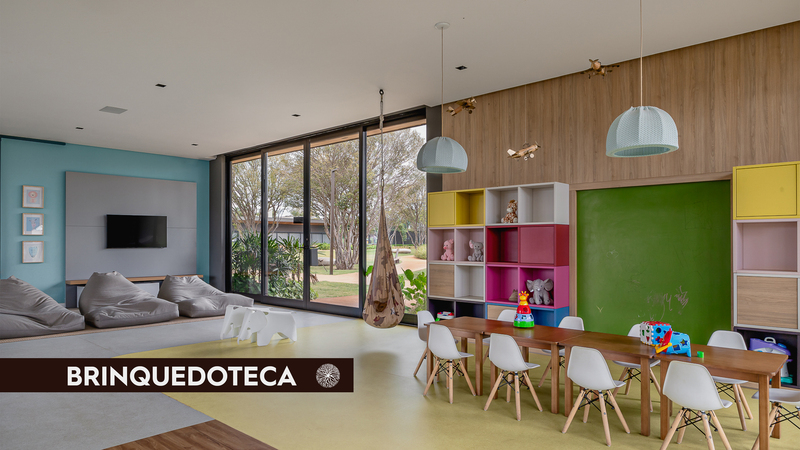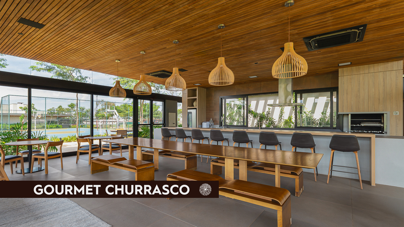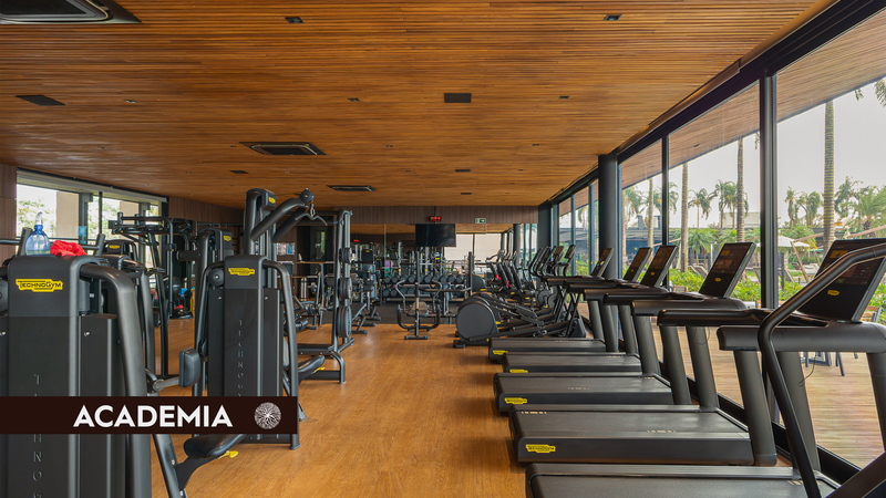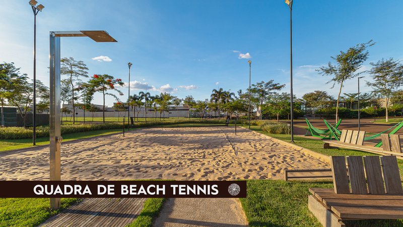 4 hectares de área central com atrações especiais: Quadra de tênis, Piscina com borda de vidro, academia completa, quadra de squash e spa.